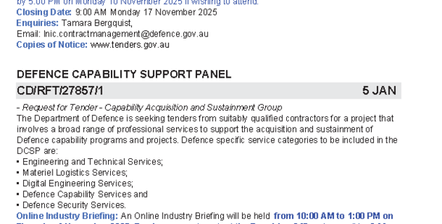 A PDF of the latest Defence Tenders can be downloaded here. Read more