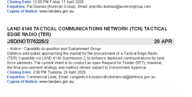 A PDF of the latest Defence Tenders can be downloaded here. Read more