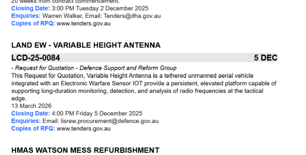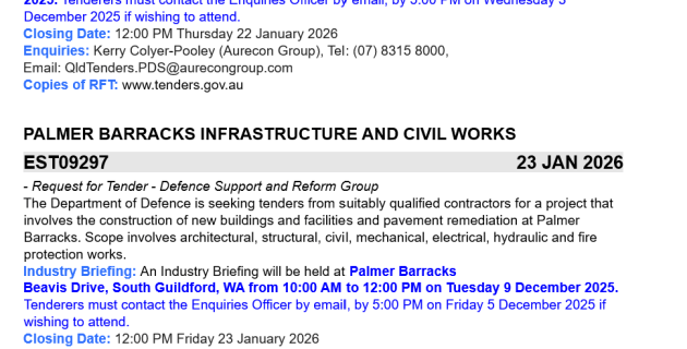 A PDF of the latest Defence Tenders can be downloaded here. Read more