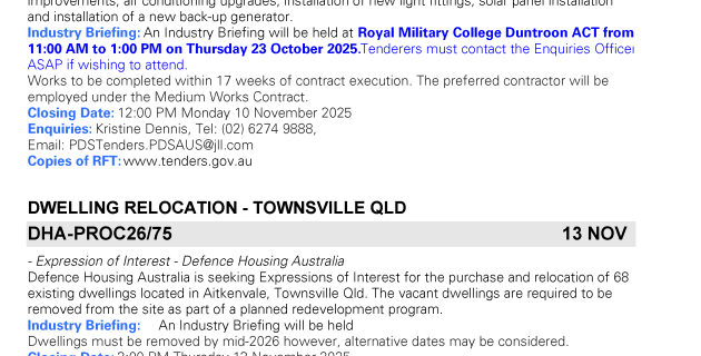 A PDF of the latest Defence Tenders can be downloaded here. Read more