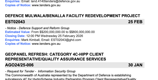A PDF of the latest Defence Tenders can be downloaded here. Read more