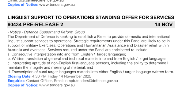 A PDF of the latest Defence Tenders can be downloaded here. Read more